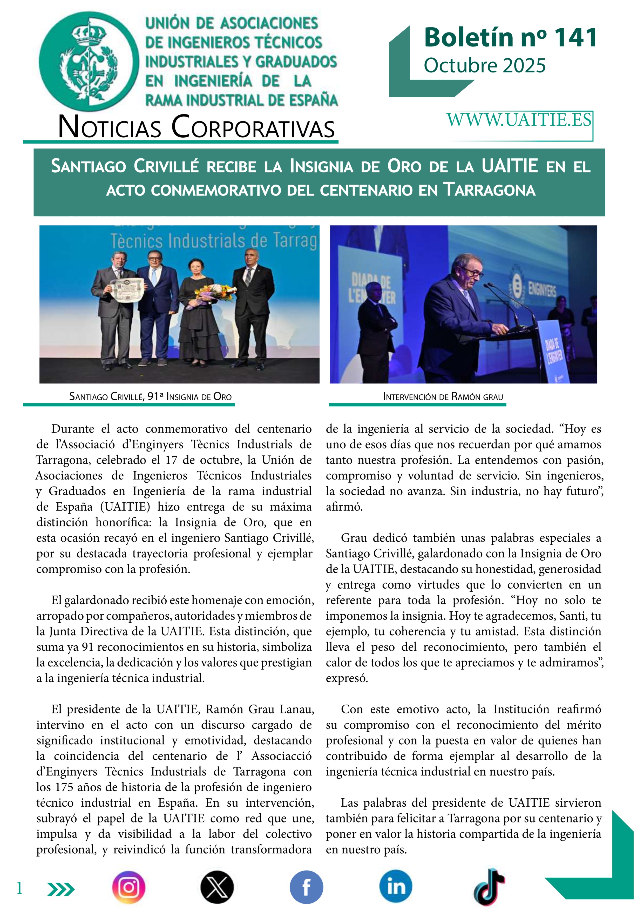 Boletín semanal de la Ingeniería Técnica Industrial publicado por nuestro Colegio.