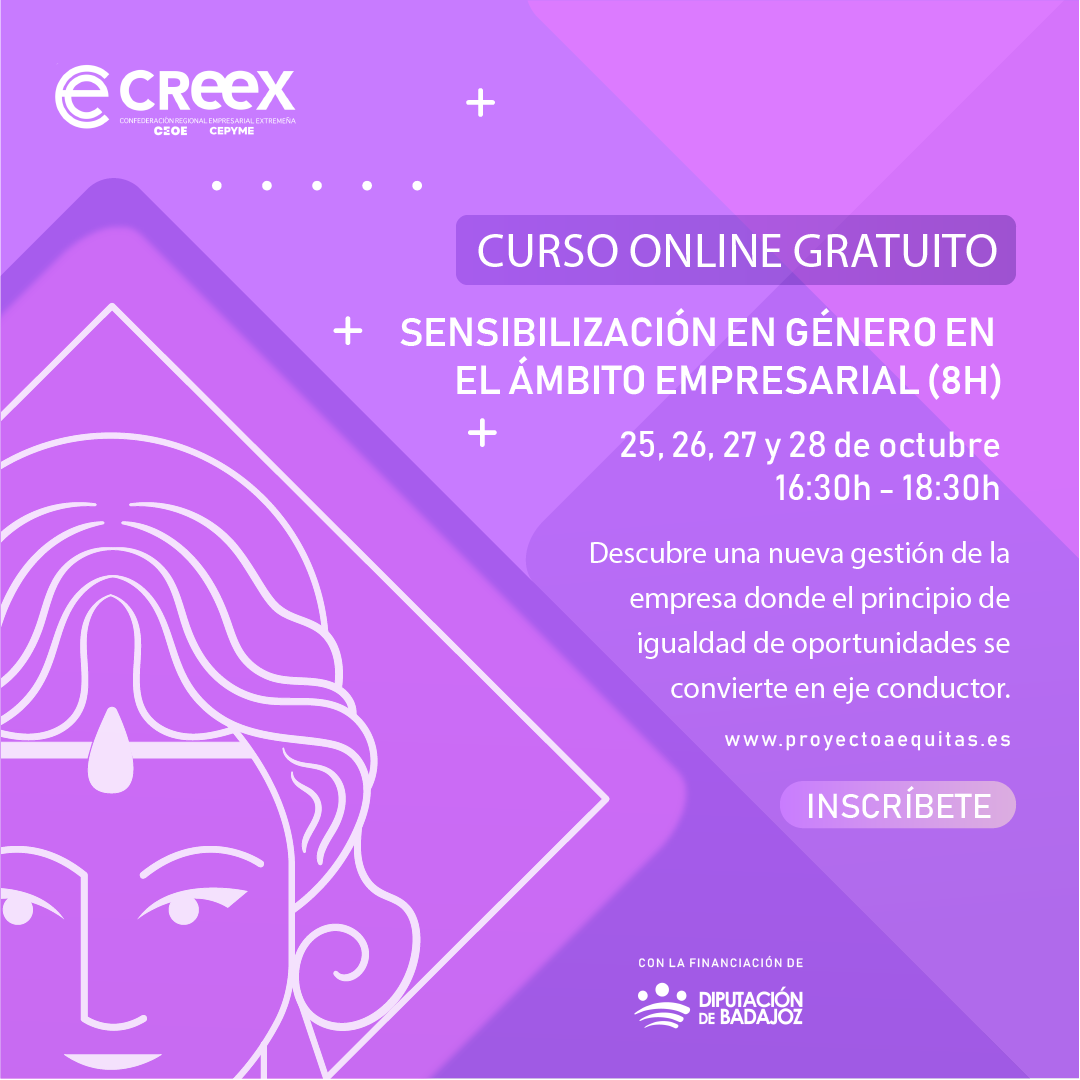 Este curso está enmarcado dentro de las acciones del Proyecto Aequitas que desarrolla la Confederación Regional Empresarial Extremeña (CREEX) y financia Diputación de Badajoz.
